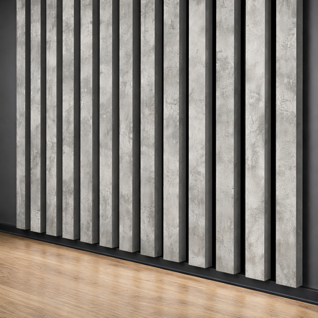 3D dekorative Lamellen, Holzleisten für Wände, Decke oder Trennwand (28x37 cm) (Beton/Loft)