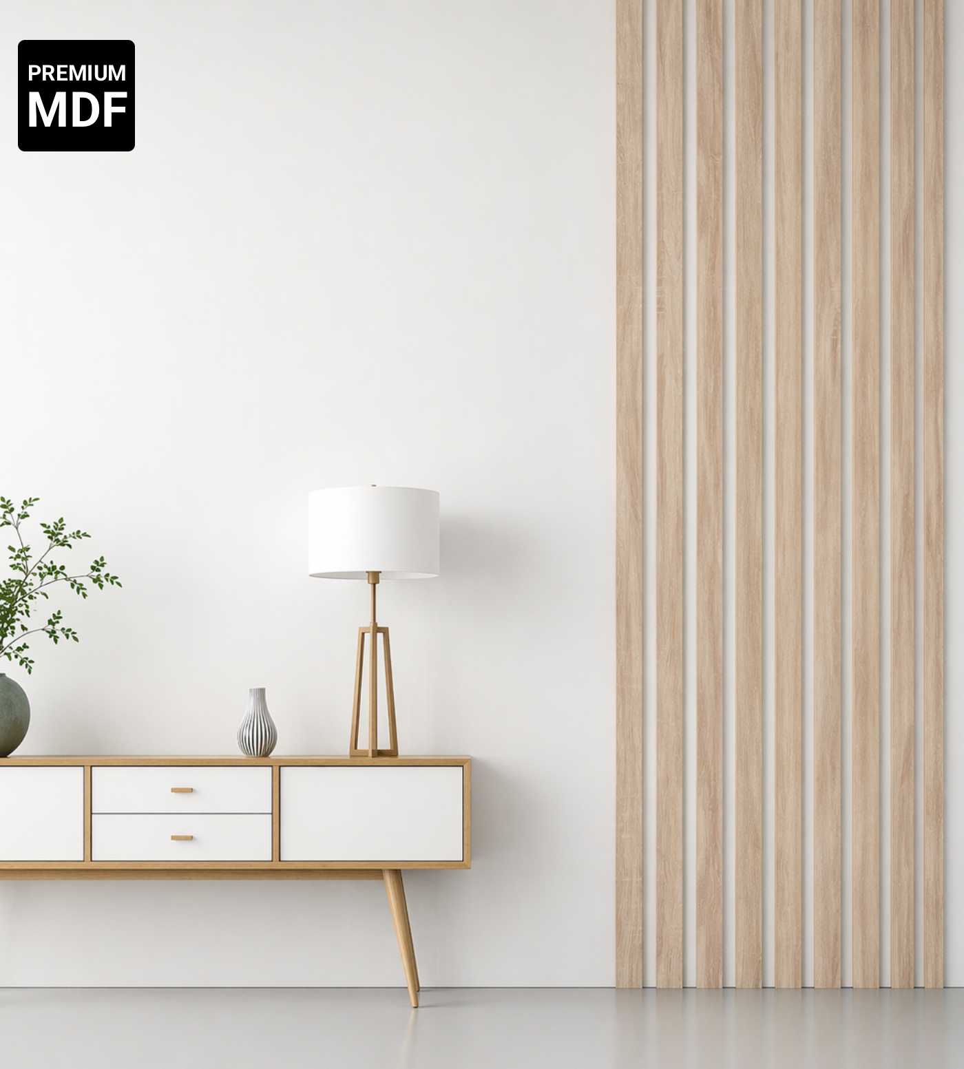 Lamele so izdelane iz MDF plošče obložene s kakovostnim furnirjem ali hrastovim furnirjem, kar zagotavlja dolgotrajno obstojnost izdelka. Struktura lesa zagotavlja še boljše vizualne učinke in naredi letvice bolj pristne.